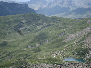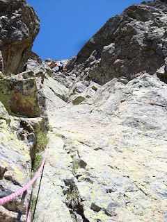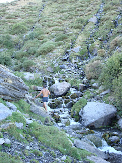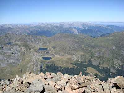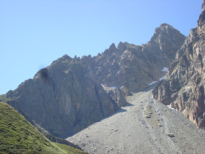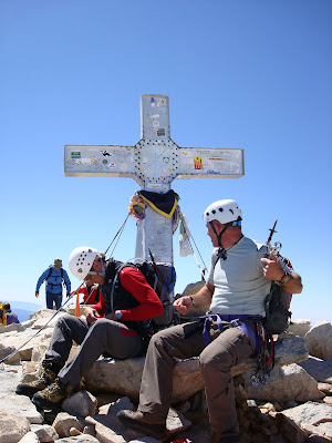 Tras los abrazos y fotos de la cumbre emprendimos el interminable descenso por la otra vertiente, 1800 m de desnivel... 1000 de ellos por una pedrera interminable...15 horas caminando...